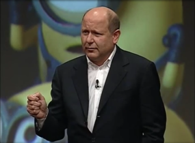 um ein globales Publikum anzusprechen. Während er darüber spricht, werden auf einer Leinwand hinter ihm die Minion-Figuren gezeigt. Zum Schluss seines 10-minütigen Vortrags zeigt er einen Ausschnitt aus dem Minion-Film "Despicable Me" (2010, dt. Ich − Einfach unverbesserlich), dem ersten Illumination Entertainment-Produkt. Darin ist zu sehen, wie Bösewicht Gru seine Minions versammelt und dann eine Rede hält, in der er ankündigt, mithilfe eines Schrumpfungsstrahlers den Mond zu schrumpfen, um ihn zu stehlen. |